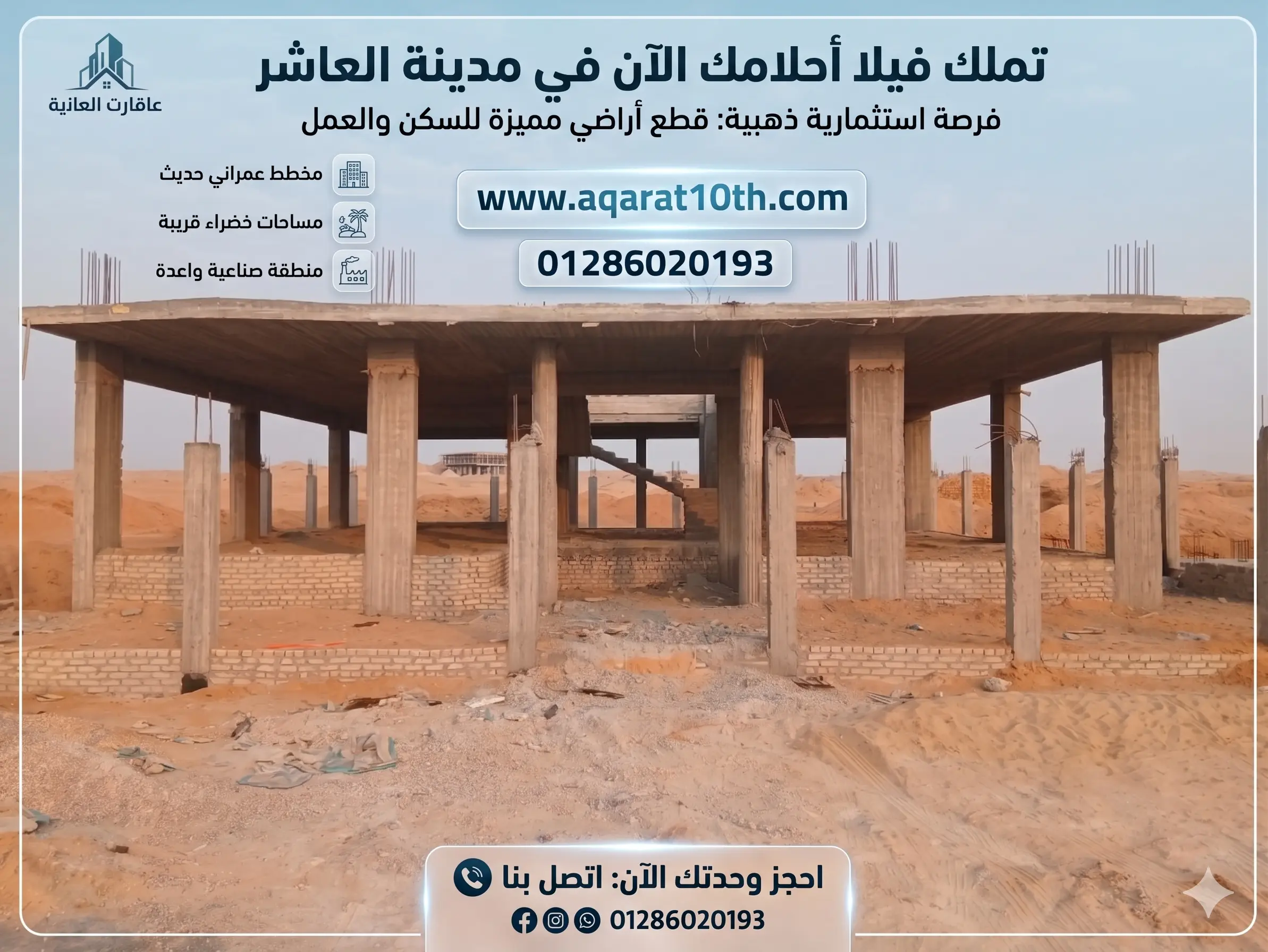 فرصة حقيقية بسعر مميز لسرعة البيع، مناسب لمن يبحث عن موقع قوي في الحي 32 بالعاشر من رمضان.
